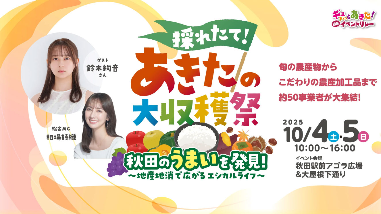 ■特設サイト:ギュギュっとあきた!週末イベントリレー 採れたて!あきたの大収穫祭